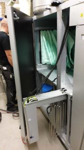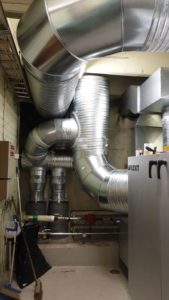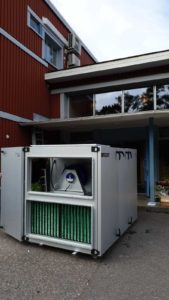 Kartoitettua kohteen kanaviston teimme ilmanvaihtosuunnitelman. Purettiin katolta vanhat poistoilmakoneet ja ilmanvaihdon konehuoneesta tuloilmakoneet. Asensimme uuden ilmavaihtokoneen, Flexit Albatross L50, jonka ilmamäärä on noin 1m3/s. Suoritimme myös mm. kanavamuutoksia ja mittaavan puhdistustyön.